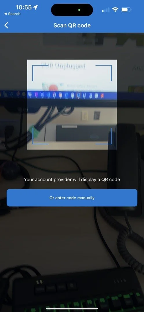 Select the “work or school account” option, then press “Scan QR code.”