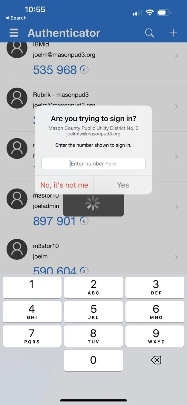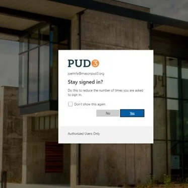 If you are successful, it should display this screen. You have successfully activated the MFA Authenticator for PUD 3 services. Now email I.S. at informationservices@masonpud3.org so they can activate it on your account in the PUD’s system.